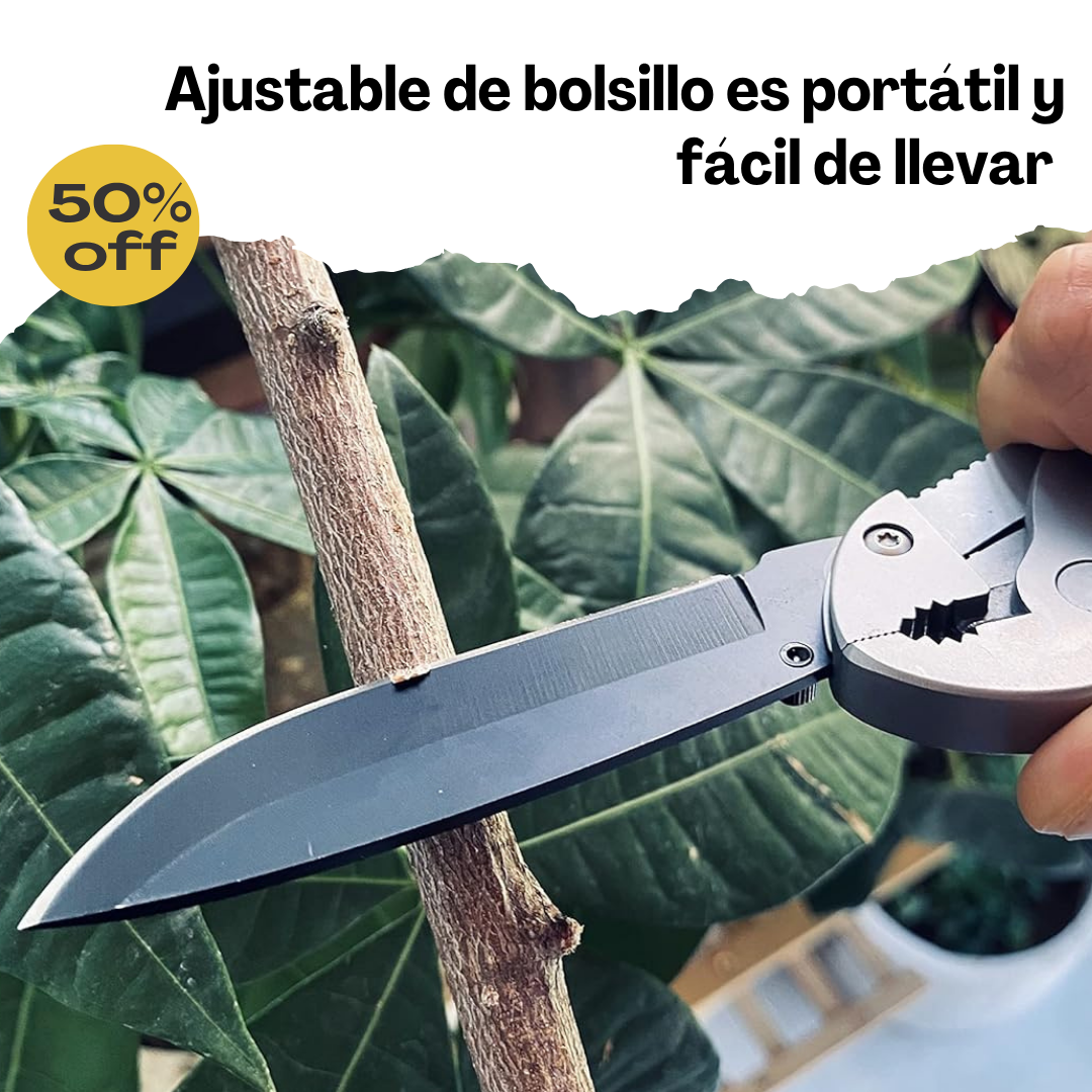 Con un diseño Único y Práctico: la combinación de alicates y llave ajustable en una sola herramienta es muy ingeniosa y útil para reparaciones rápidas que implican tuercas y tornillos, algo que las multiherramientas estándar no cubren bien.