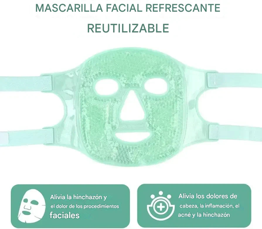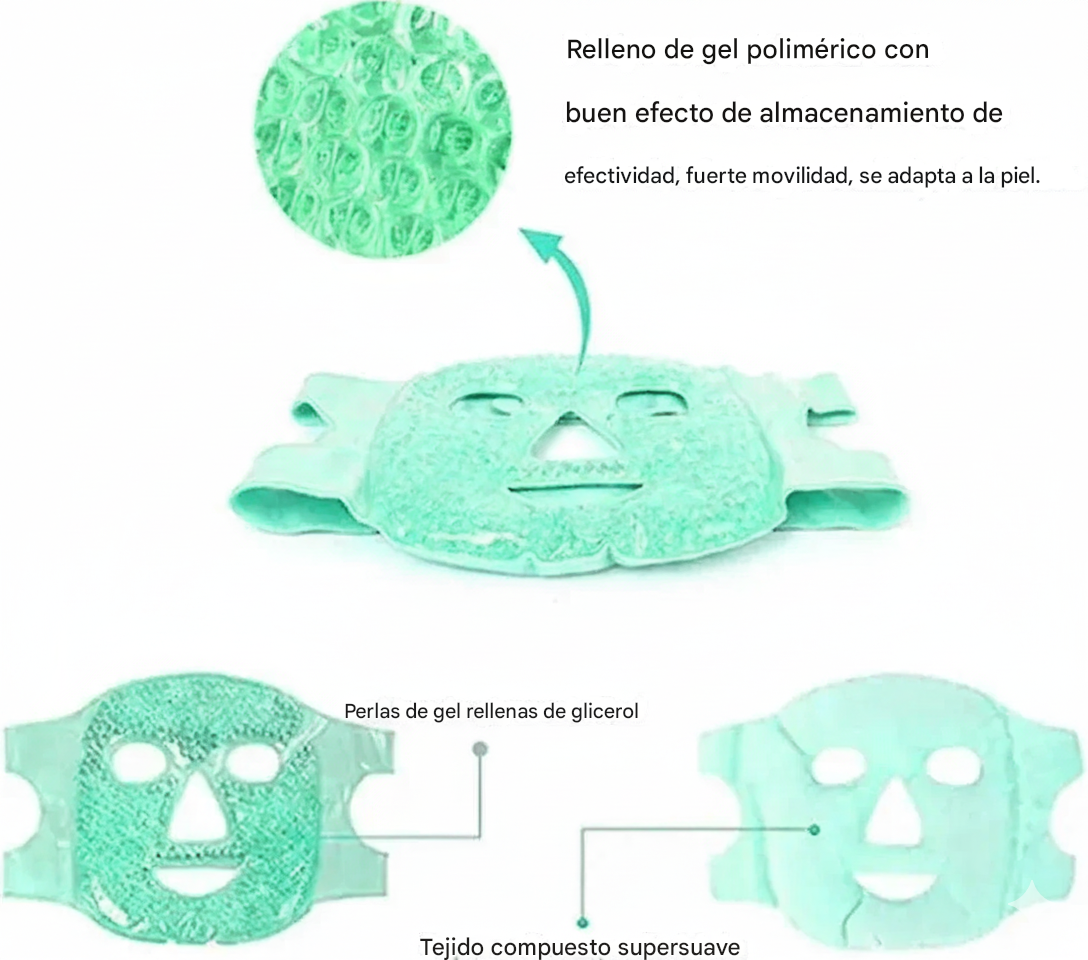 Suave en el interior, cubre toda la cara. El gel ayudan a aliviar el dolor donde más lo necesitas. Ya sea que estés buscando alivio de una migraña, dolor de cabeza, ojos hinchados o simplemente para relajarte; inflamación, enrojecimiento, migrañas, estrés, acné y mejorar la tez facial.